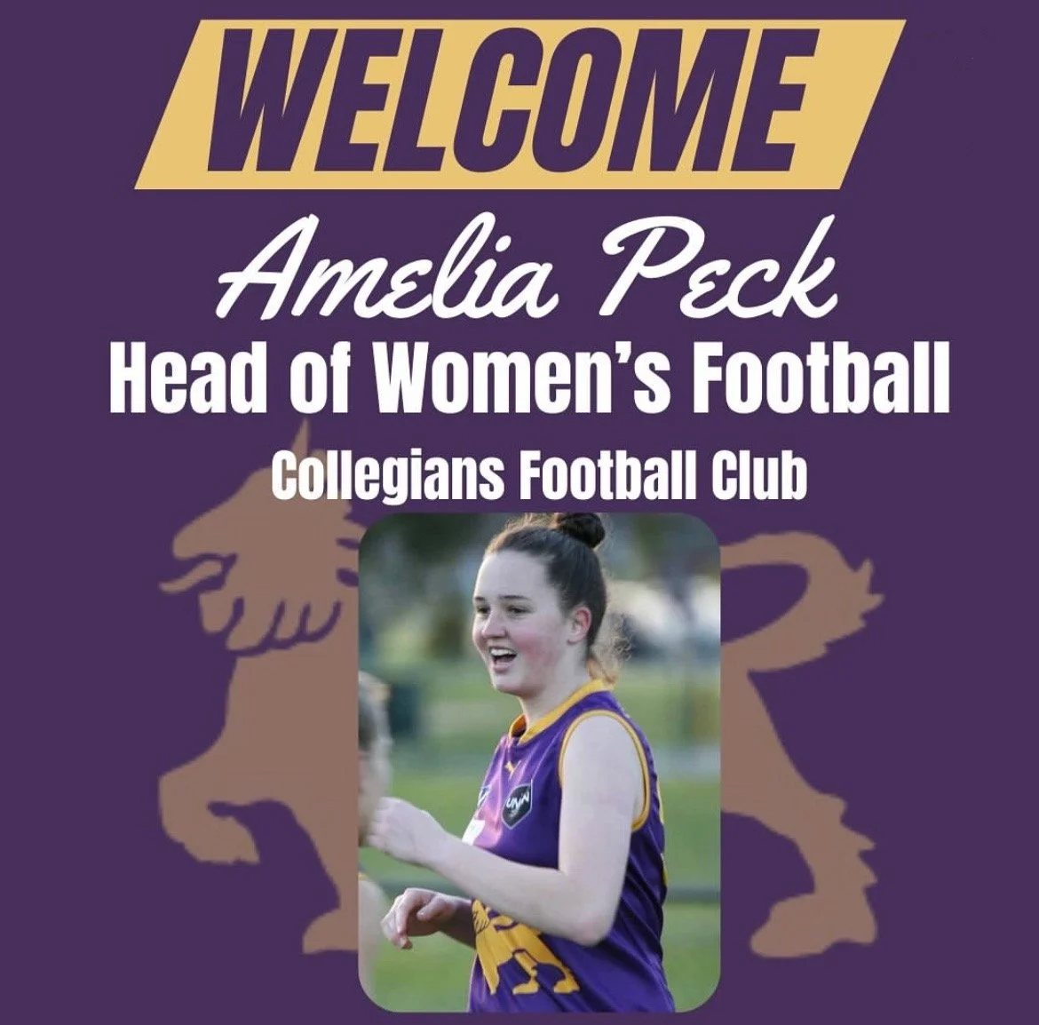 We are thrilled to introduce the new Head of Women's Footy at Collegians Football Club, Amelia Peck (aka Pecky)!